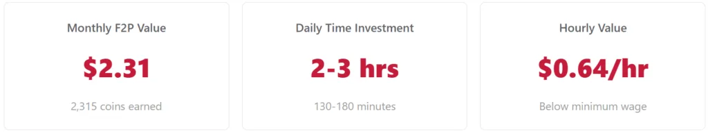 Metric 5: total F2P monthly earnings — the $2-3 reality