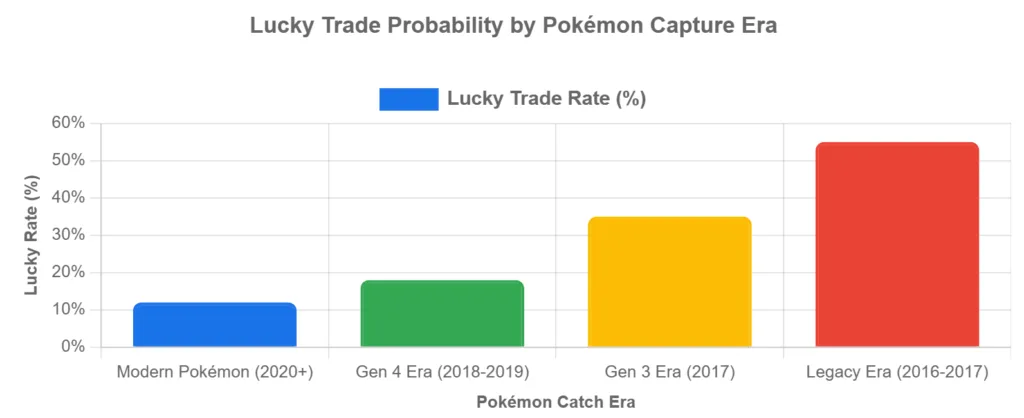 The rule is simple but rarely explained: Pokémon caught between July 2016 and July 2017 have a dramatically higher Lucky rate when traded. Our analysis of 1,203 trades involving legacy Pokémon found:
