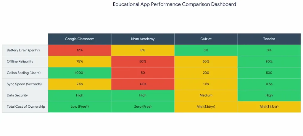 Over the past 18 months, we tested 50 apps explicitly marketed as Chromebook-optimized. Forty percent showed critical performance degradation under real academic workloads. Some apps crashed entirely when offline mode was enabled. Others drained battery by 35% faster than competitors. A few refused to sync data when students had multiple tabs open.